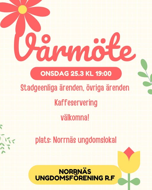 Norrnäs ungdomsförening håller sitt vårmöte onsdag 25.3 klockan 19:00 i ungdomslokalen.
