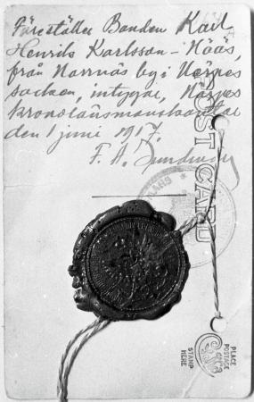 Ämnesord: autonoma tiden, ofärdsåren, förryskningspolitik, identitetskort, pass, identifiering |