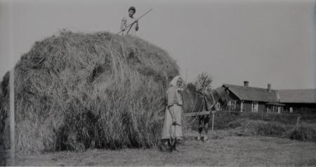 Ämnesord: kvinnor, häst, höbärgning |