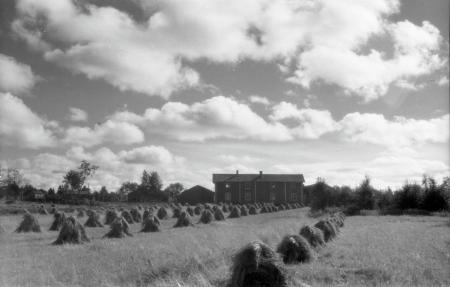 Ämnesord: bondgårdar, moln, åkrar, spannmålsodling, havre |