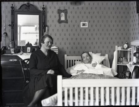 Ämnesord: kvinnor, interiörer, åldringar, sängar, sjukdom |