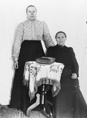 Ämnesord: kvinnor, bord, borddukar, örhängen, fotoalbum |