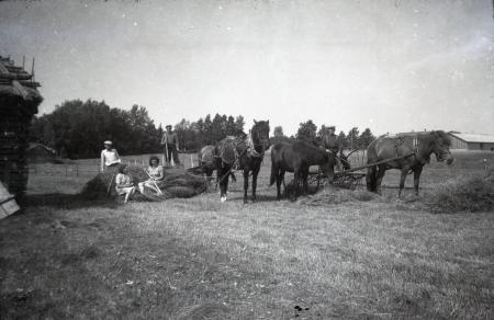 Ämnesord: jordbrukare, ängar, häst, höbärgning, slåtter |