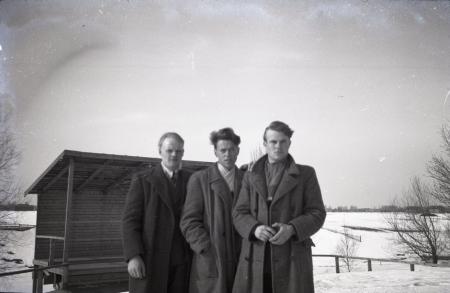 Ämnesord: män, fritid, slätter, vattendrag, åkrar, vinter, dansbanor |