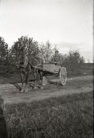 Ämnesord: soldater, häst, uniformer, kärror |