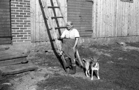 Ämnesord: hund, jordbrukare, stegar, ladugårdar |