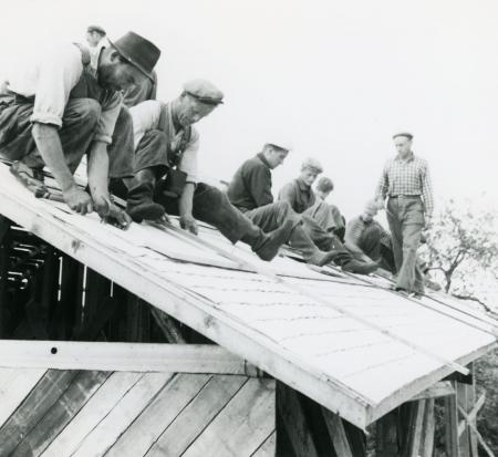 Ämnesord: talko, lantbruksbyggnader, pärttak |